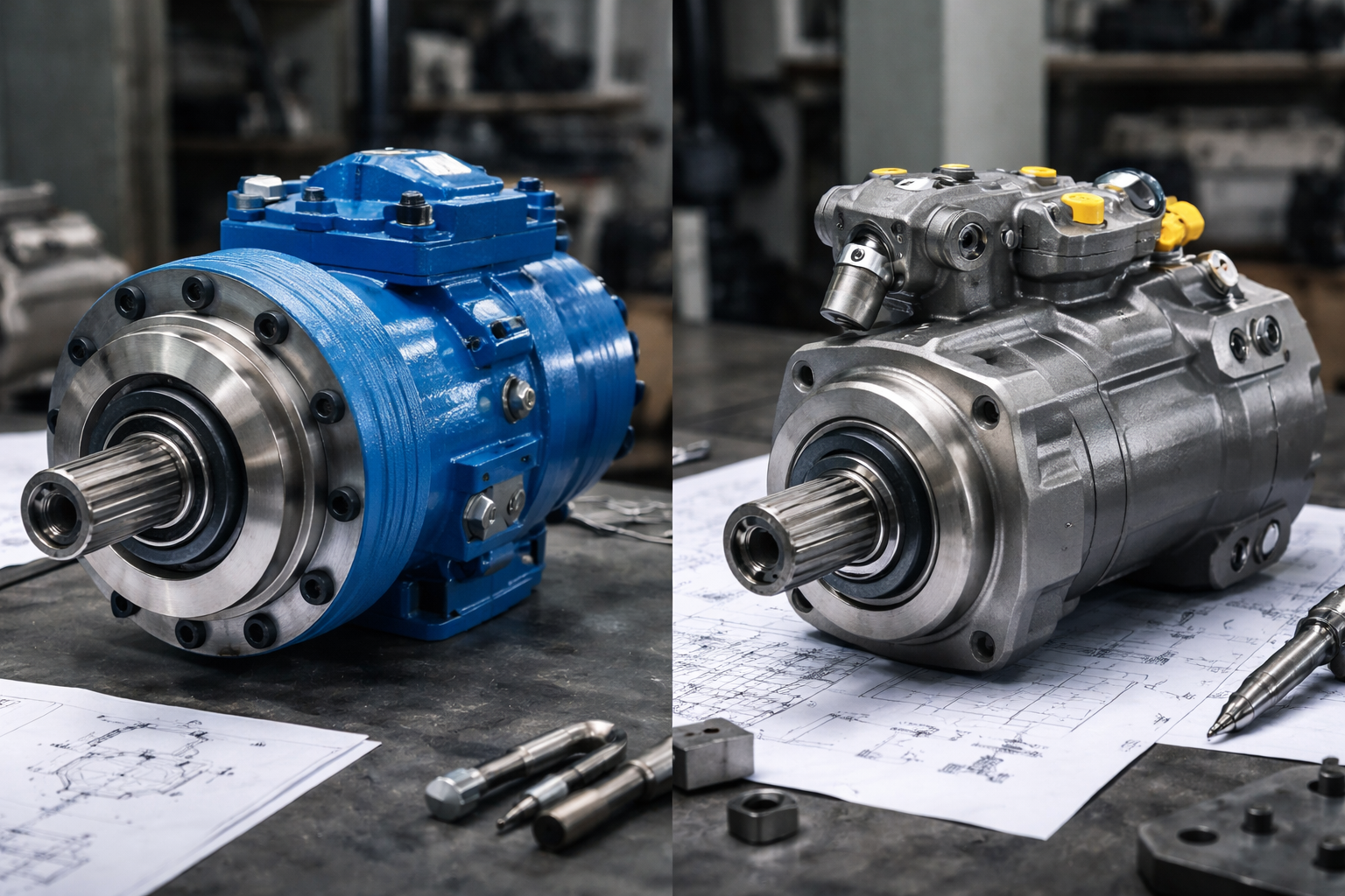 При выборе гидромотора важно понимать не только его характеристики, но и принцип работы. Два самых распространённых типа - планетарные и аксиально-поршневые гидромоторы. На первый взгляд они решают одну задачу - преобразуют энергию гидравлической жидкости в крутящий момент. Но на практике это два разных гидромотора, которые подходят для разных условий эксплуатации.